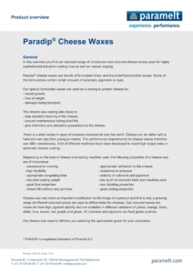 Over the years, cheese waxes have increasingly been used to protect and promote hard and semi-hard cheeses. The wax provides not only a fully sealed barrier coating, but also an attractive appearance with bespoke color and controlled gloss. Today Paramelt offers more than a hundred products, specifically for the cheese industry and many of them bespoke products to meet specific customer or process needs.