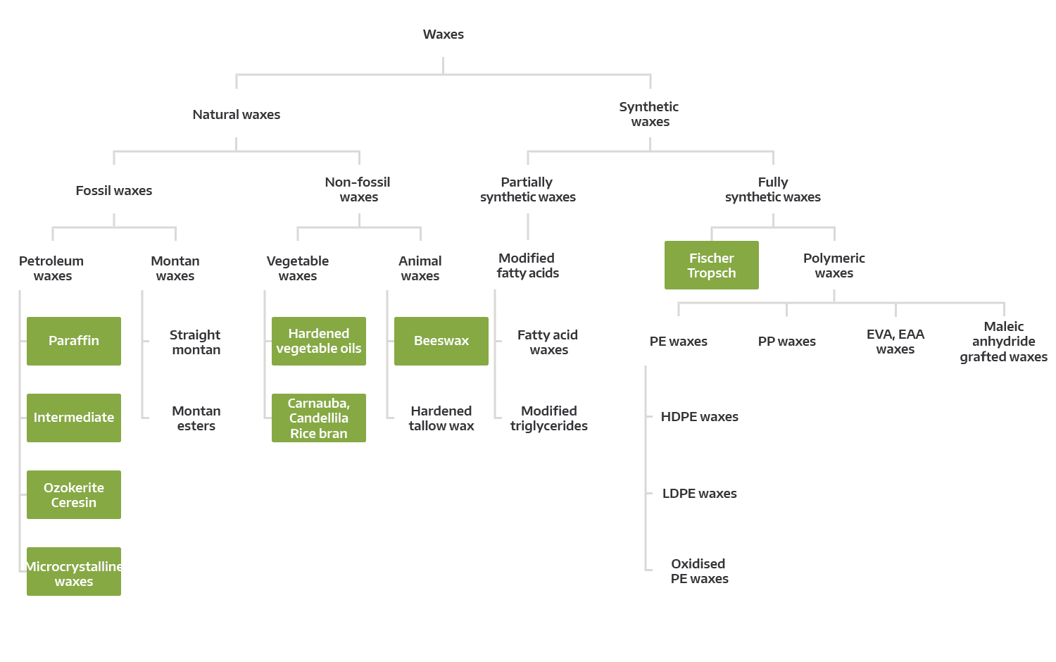 Our primary specialism lies in the fields of mineral hydrocarbon waxes, both petroleum based waxes such as microcrystalline, paraffin and intermediate waxes, as well as the synthetically produced Fischer-Tropsch waxes.
